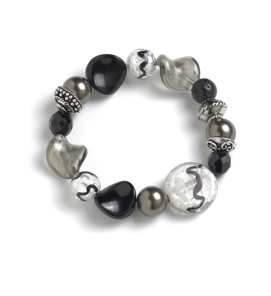 Handmade Bracelet using Silver Lined and Patterned Glass Beads, Bronze Swarovski Pearls, Black Onyx