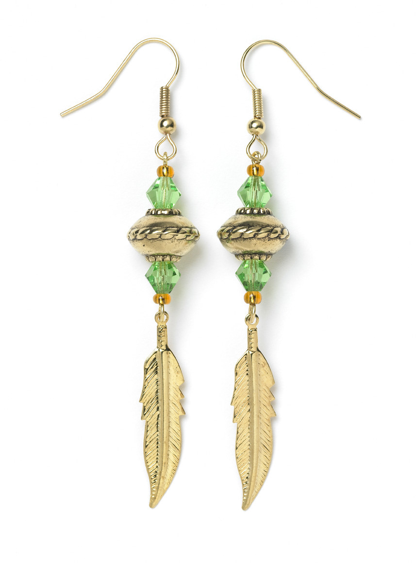 Green & Gold Feather Earrings