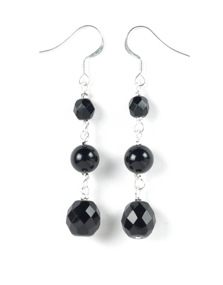 Black Onyx & Glass Earrings