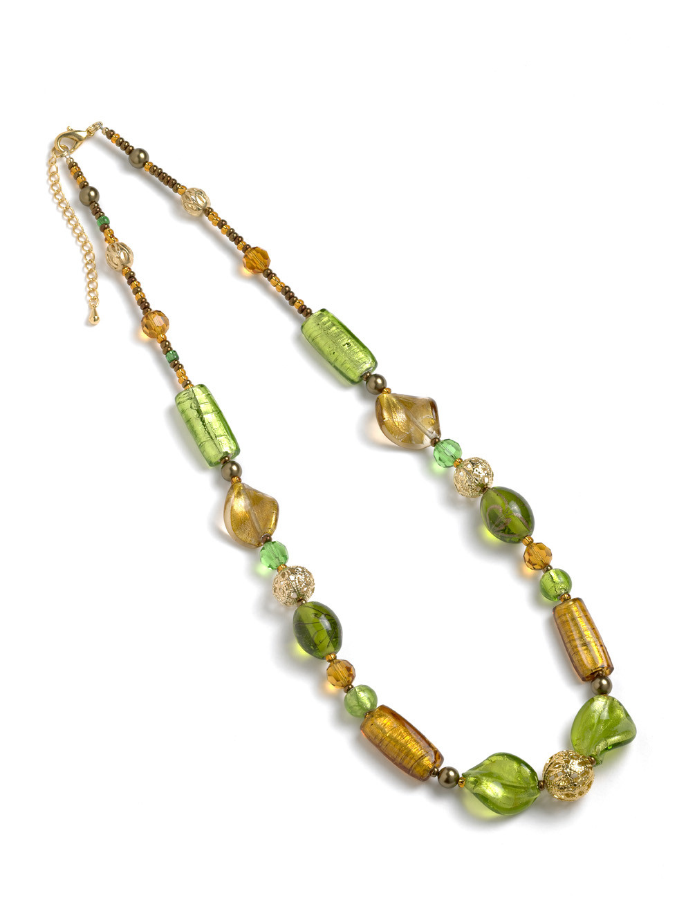 Handmade Necklace created using Gold and Lime Green Silver foil lined Glass Beads