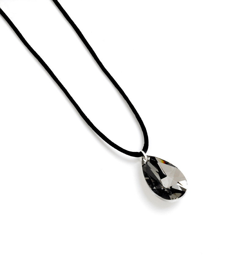 40 x 20mm Crystal Pendant Teardrop on a choice of 16 inch Black Faux Suede Necklace Silver Plated Snake Chain