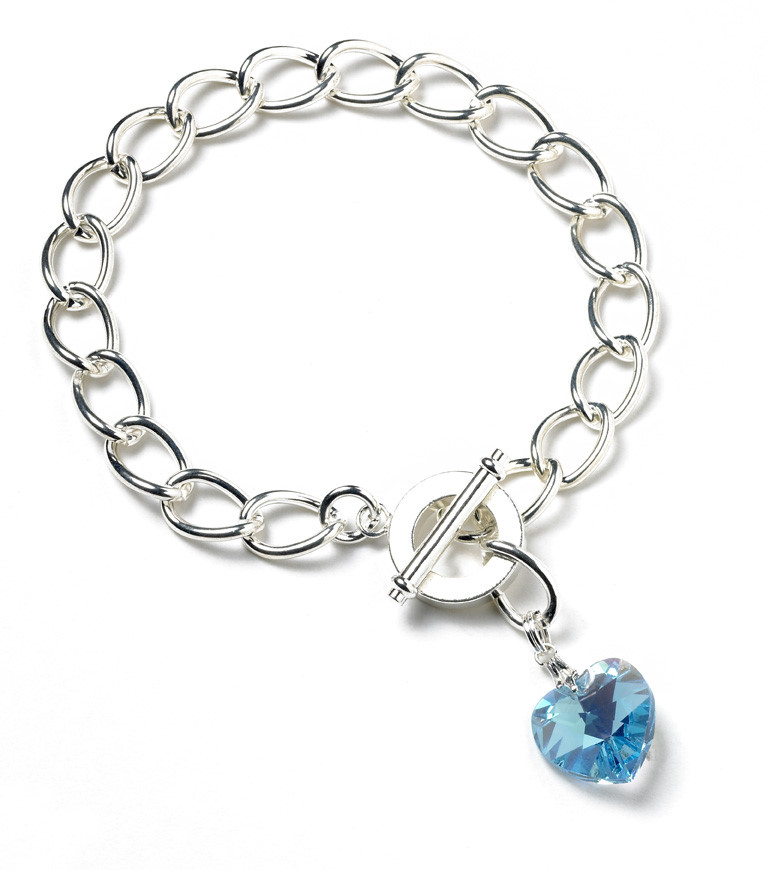 Aqua Blue Crystal Heart Bracelet