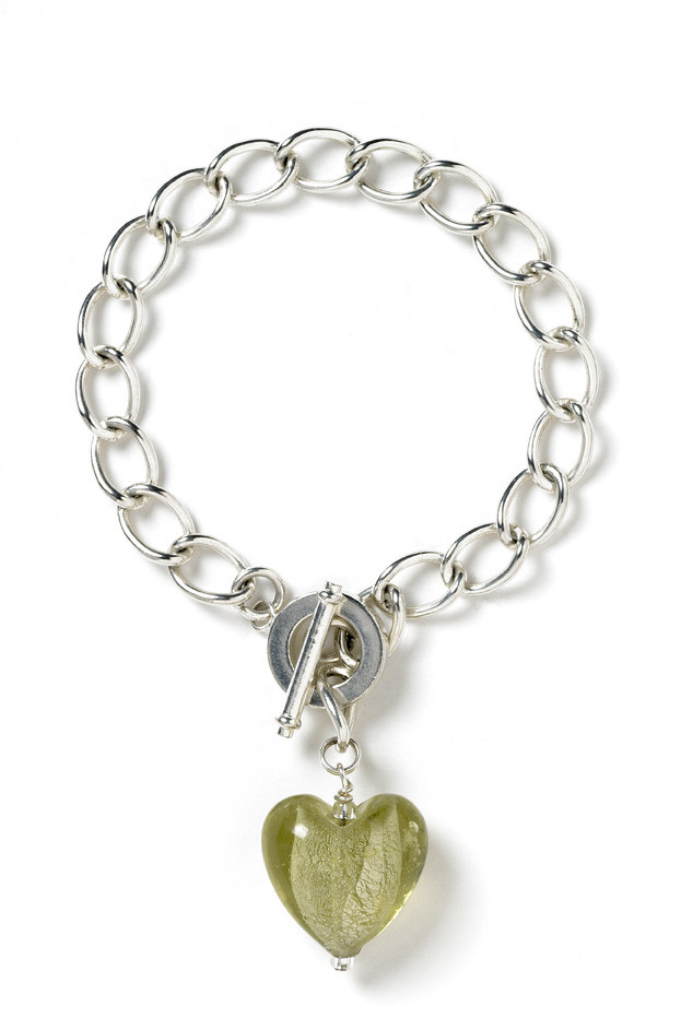 Light Green Glass Heart Bracelet