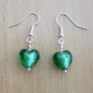 Bright Green Glass Heart Earrings