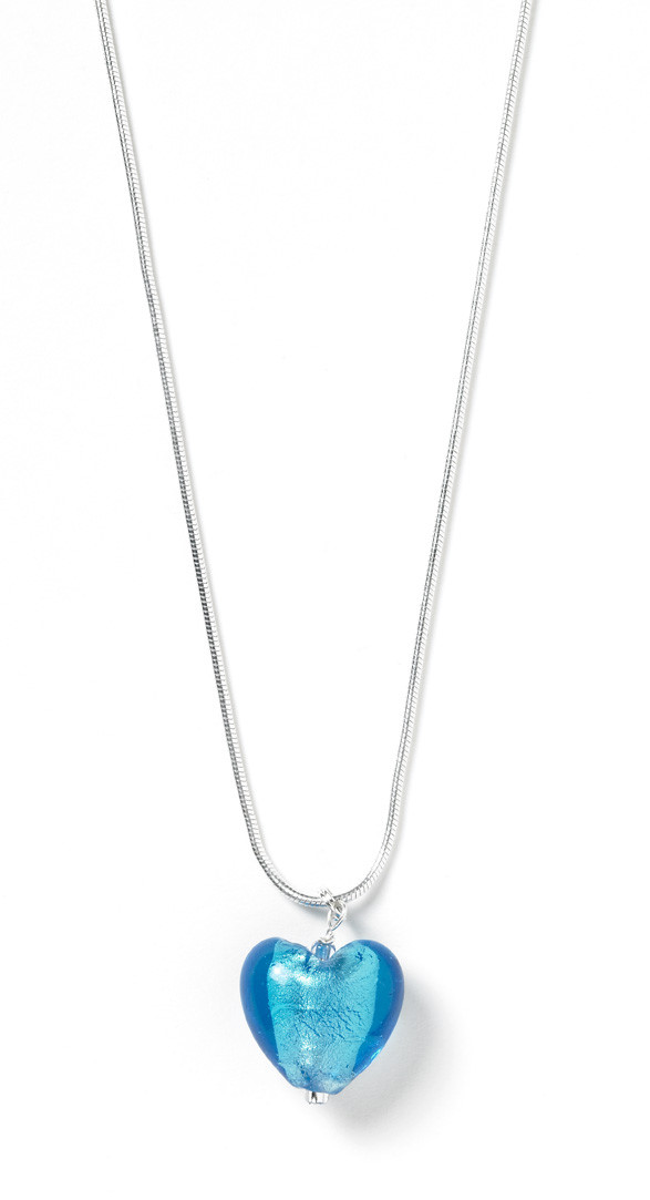 20mm Glass Heart on a 16" Silver-Plated Snake Chain