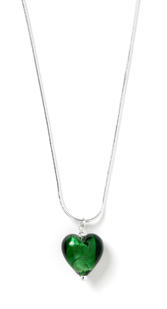 20mm Glass Heart on a 16" Silver-Plated Snake Chain