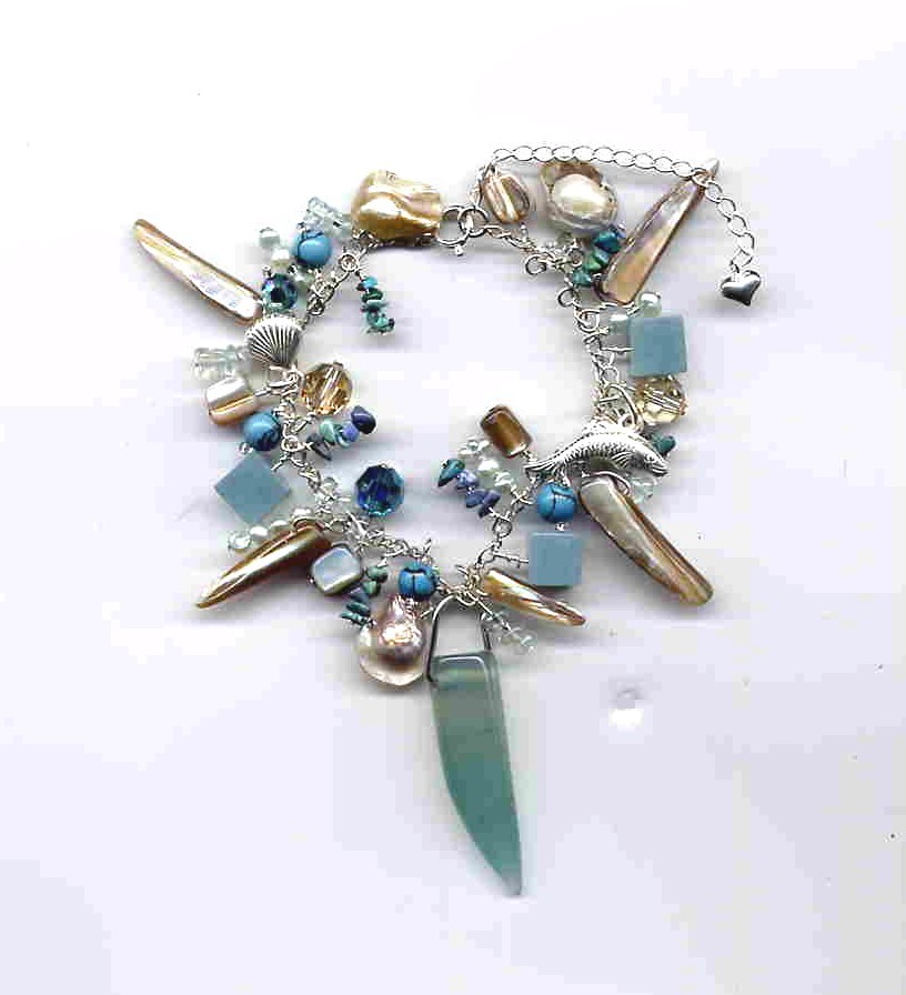 calcidony, chinese turquoise, aquamarine, semi-precious beads, and top quality faceted glass beads.