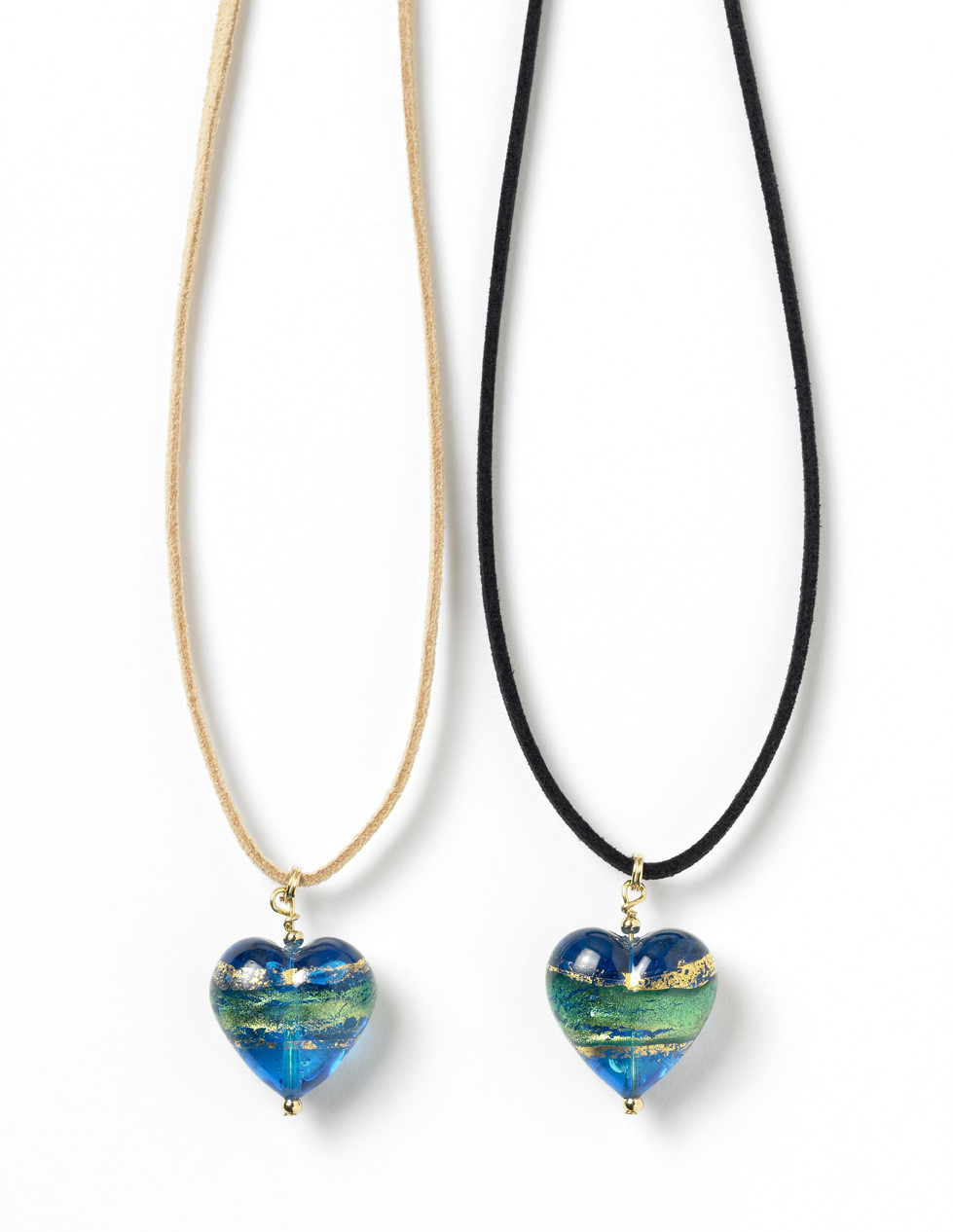 Murano Glass Heart Necklace-Blue, Green and Gold