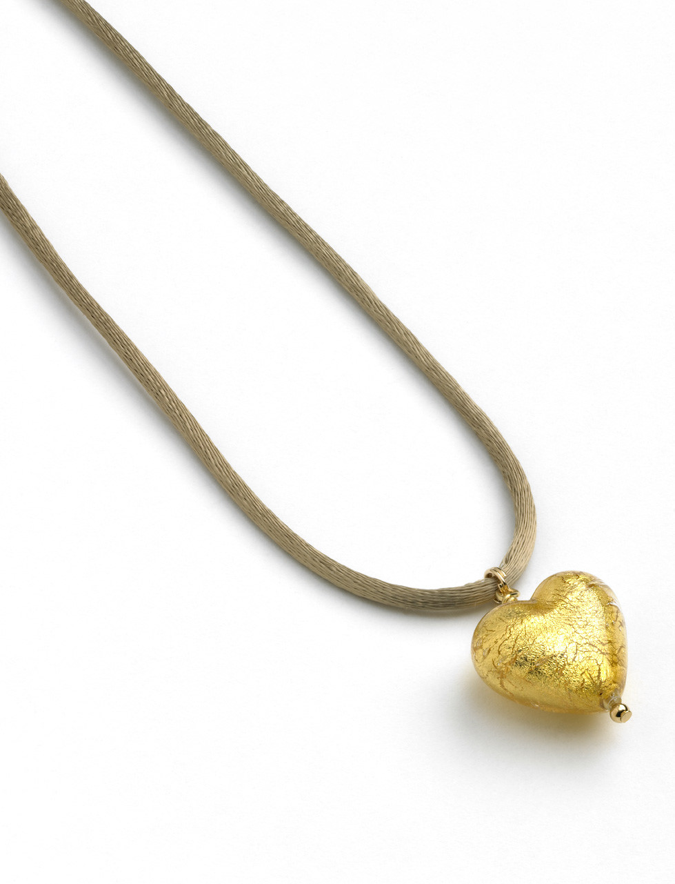 This murano is on a 16 inch coffee coloured satin cord with gold-plated extender chain and catch.