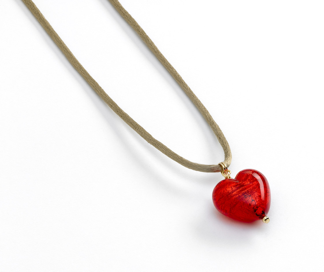 Murano Glass Heart Necklace-Fire Orange