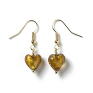 Murano Glass Heart Earrings - Topaz on Gold Handmade Murano Glass direct from the furnances of Italy. The earring hooks are Gold Plated £18.00