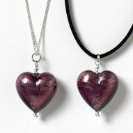 CN0046 Murano Glass Heart Necklace Lilac Genuine 20mm Murano Glass Heart, direct from the Furnaces of Murano, Italy. CN0046a -15 inch Black Suede Cord with a 2 inch extender chain. £18.00