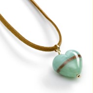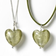 CN0044 Murano Glass Heart Necklace Olive Genuine 20mm Murano Glass Heart, direct from the Furnaces of Murano, Italy. CN0044a -15 inch Olive Green Suede Cord with a 2 inch extender chain. £18.00