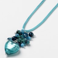 CN0095 Murano Glass Heart Necklace-Turquoise Murano Glass Heart Necklace Turquoise Genuine 20mm Murano Glass Heart, direct from the Furnaces of Murano, Italy. This murano is on a 16 inch turquoise satin cord with Sterling Silver extender chain and catch £18.00