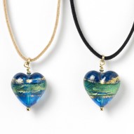 CN0087 Murano Glass Heart Necklace-Blue, Green and Gold Genuine 20mm Murano Glass Heart, direct from the Furnaces of Murano, Italy. Choose between a 16 inch beige or black suede cord with gold-plated extender chain and catch. £18.00 ENLARGE IMAGE |