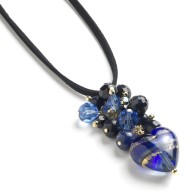 CN0089 Large Charm Necklace Royal Blue Handmade using faceted glass, swarovski crystal, sodalite and blue goldstone semi-precious beads.. This necklace is on a 16inch black suede cord with gold-plated ends, catch and extender chain £35.00